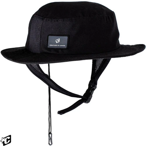 Creatures of Leisure | Surf Bucket Hat | Black | Sun Protection For Surfers | Beach and Water Sports Hat with Chin Strap