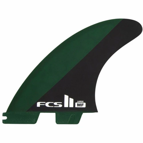 FCS 2 Mick Fanning’s MF signature large thruster surfboard fin set (Olive/Black), delivers massive drive / speed and projection for deep bottom turns, powerful off the top & holding speed through big carves.