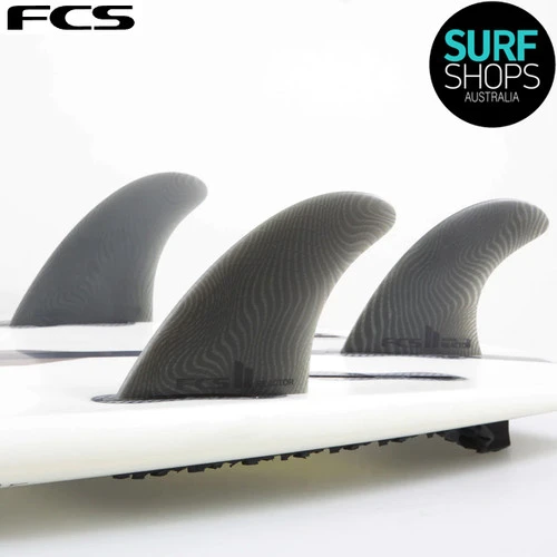 FCSII Reactor thruster fins are a fast reacting fin template for performing tight radius turns. Smaller centre fin for more pivot and tail release. Upright template with flat foil on the side fins allows for acute directional changes. Designed for surfers who like to stay tight in the pocket and perform aerial manoeuvres. Staff Tip- watch the video – it’ll be impossible for you to pass up this addition to your board.Â